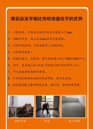 9,施工厚度1——8公分之間可調(diào)控解決所有地面不平之難題